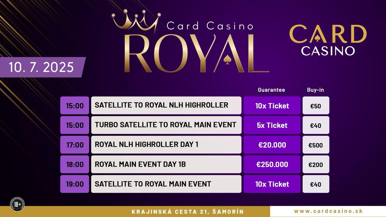 Nach dem Super-Satellite am Dienstag wurde gestern an Tag 2 vom Card Casino Royal Festival der 1. Flight im €250 Main Event im Card Casino Samorin (vormals Card Casino Bratislava) gespielt, dass allein eine Garantie von €250.000 besitzt! Am Ende des Spieltages sollte der 1. Chipleader des Hauptturniers aus Österreich kommen!