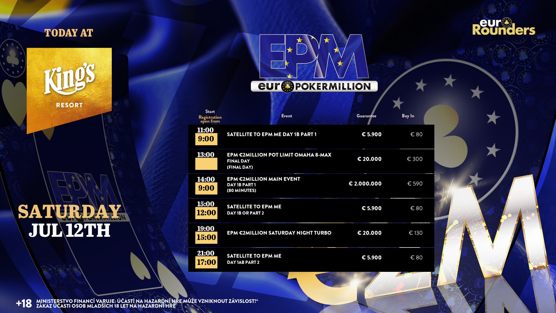 Bei der Euro Poker Million 2 Million Edition powered by euroRounders im King’s Resort Rozvadov wurde gestern der Main Event gestartet und zwei Turniere wurden entschieden.