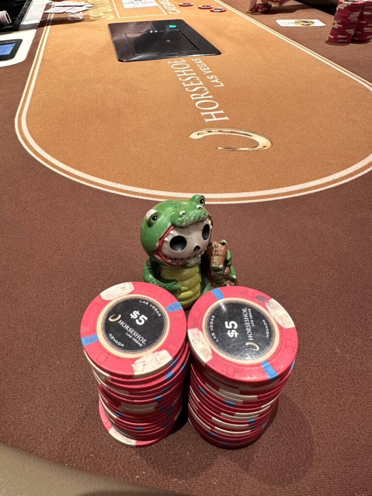 Ich checkte aus, lagerte mein Gepäck und hatte nun noch neun Stunden, die ich irgendwie vertreiben musste. Der Plan war es, im MGM Grand Cash Game zu spielen, meine Poker-Comps noch etwas weiter auszubauen und dann zum richtigen Abschluss lecker Essen zu gehen. Allerdings startete exakt bei meiner Ankunft im Pokerraum ein $200 Mystery Bounty Turnier und ich entschied mich dafür, dieses mitzuspielen. Immerhin hatte ich diesen Trip kein einziges Turnier gespielt. Leider sollte aber auch dies nicht klappen und ich schied fünf vorm Geld aus.