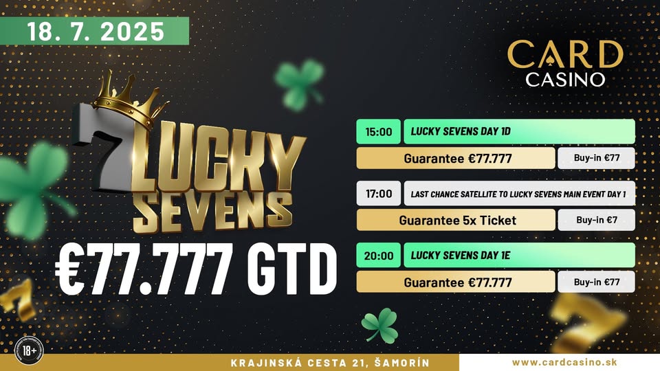 Im Card Casino Samorin läuft momentan ein weiteres Poker-Highlight mit dem €77 Lucky Sevens-Turnier (€77.777 GTD).
