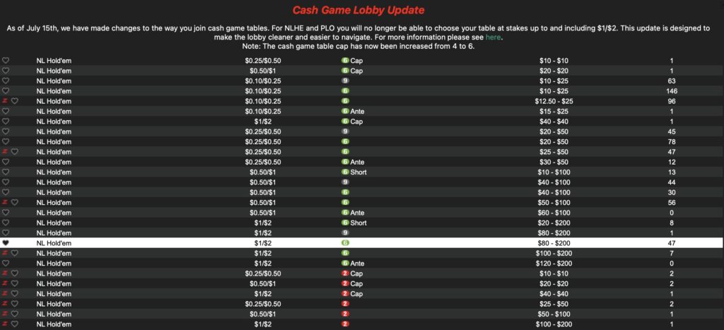 Für die High Stakes bleibt dagegen alles beim Alten. Wer sich dort zu einem Spiel verabredet, kann das in gewohnter Manier tun.