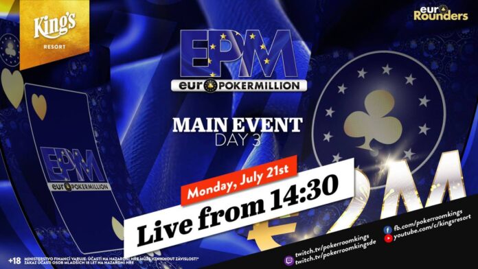 Am Montag gibt es ab 14:30 Uhr live aus dem King’s Resort Rozvadov, den Livestream vom Tag 3 des €590 Euro Poker Million (EPM) NLH Main Event powered by EuroRounders.