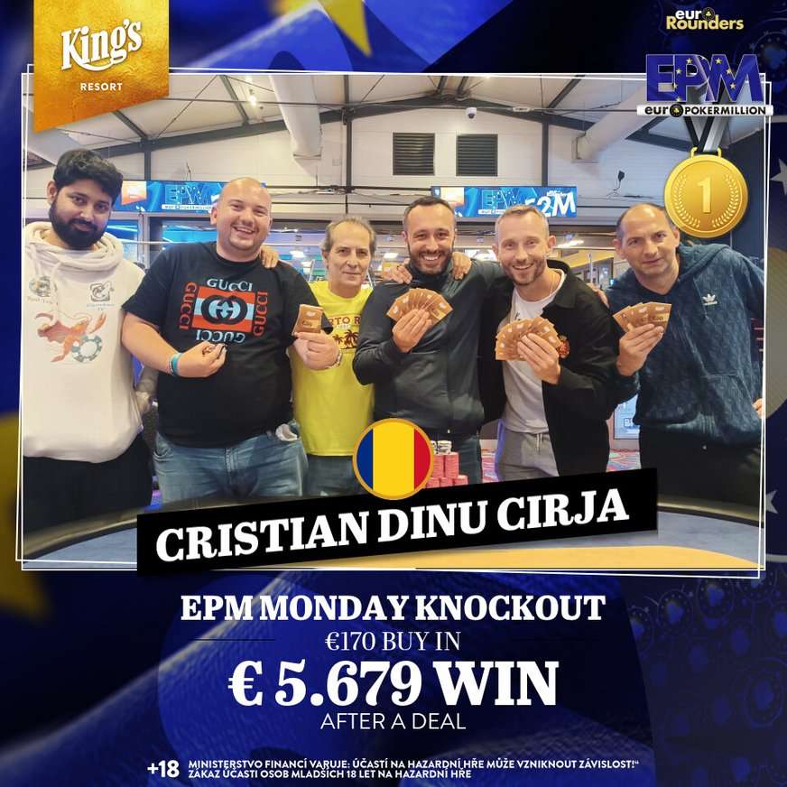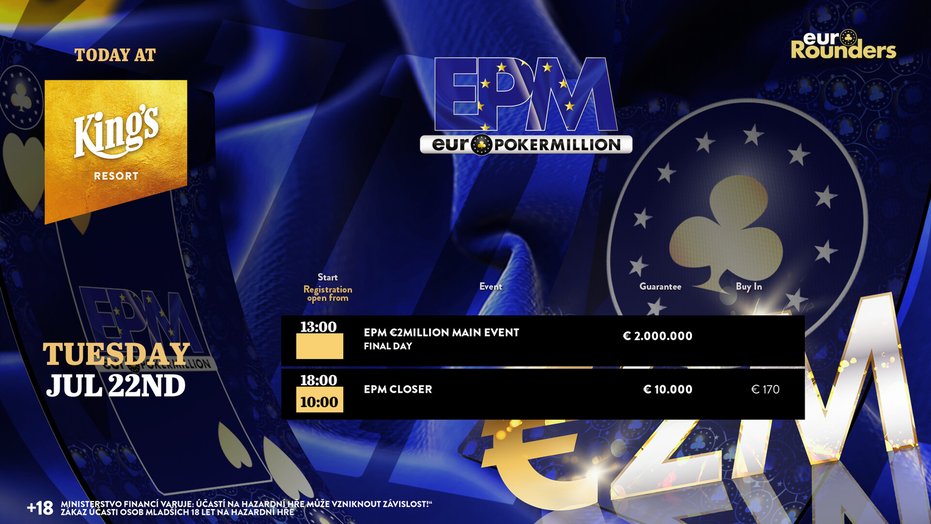 Bei der Euro Poker Million (EPM) powered by euroRounders im King’s Resort Rozvadov standen gestern zwei Side Events auf dem Turnierplan, und auch im King’s Casino Prag wurde gepokert.