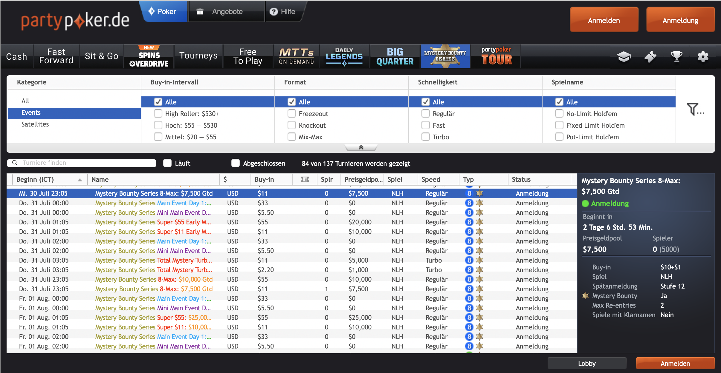 Große News aus dem Hause Entain: partypoker veranstaltet zum ersten Mal eine eigene Mystery Bounty Series – von 27. Juli bis 4. August stehen insgesamt 56 Events mit über $750.000 garantierten Preisgeldern auf dem Programm mit Buy-ins zwischen $2,20 und $109.