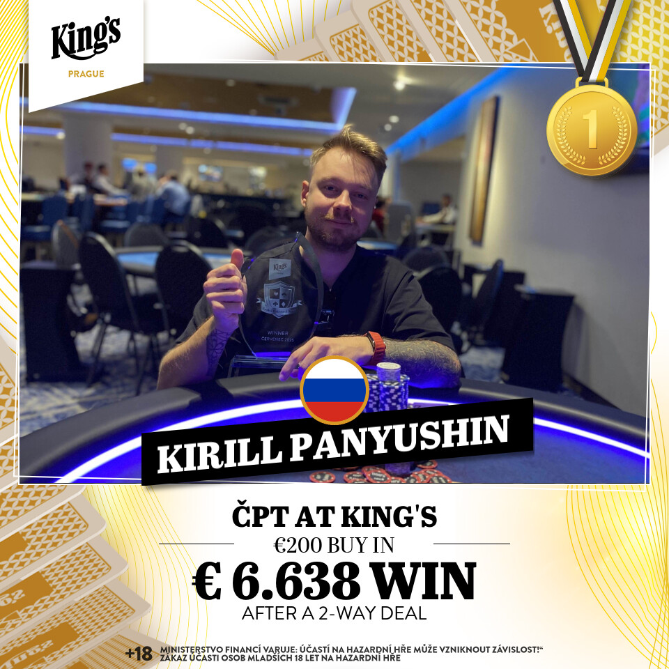 Der Tag 2 startete mit 27 Spielern und am Ende war es der Russe Kirill Panyushin, der nach einem Heads-up Deal offiziell als Sieger gefeiert werden konnte. Er erhielt mit €6.638 allerdings genauso viel wie der Zweitplatzierte Michal Plzak aus Tschechien.