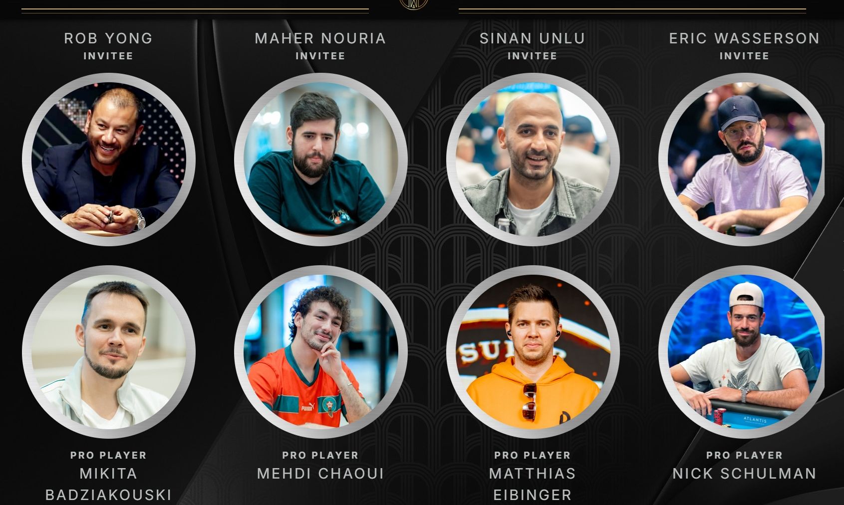 Acht Teilnehmer stehen bereits fest, darunter Matthias Eibinger und das frisch gebackene Mitglied der Poker Hall of Fame Nick Schulman, die von Sinan Ünlü bzw. Eric Wasserson eingeladen wurden.