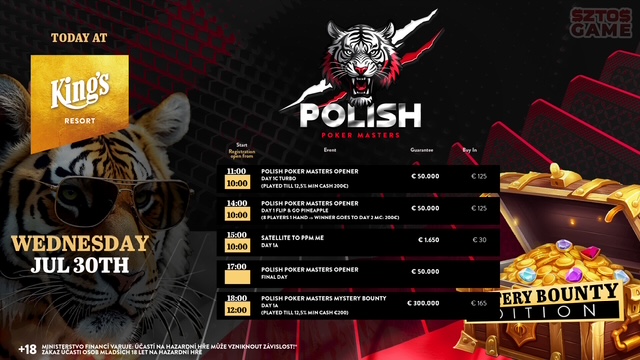 Im King’s Resort in Rozvadov wurde gestern der zweite von drei Startflights des €125 Polish Poker Masters Opener Event powered by SZTOS.Club gespielt – ein neuer Chipleader übernahm dabei die Führung im Turnier.