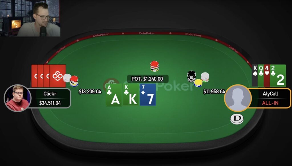 Einen weiteren Gegner fand „AlyCall“ im PLO20000 ($100/$200) mit Henri „Clickr“ Puustinen im PLO4. Das Heads-Up Battle sollte einige spannende Hände und All-In-Situationen hervorbringen.