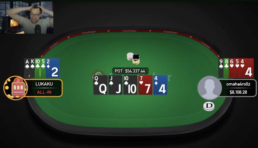 Der vielleicht beste Omaha Cashgame Spieler der Welt, Laszlo „omaha4rollz“ Bujtas, darf in dem Video ebenfalls nicht fehlen. Bei Blinds $100/$200 hatte er im 5-Card PLO gegen „LUKAKU“ allerdings nicht die beste Idee, als er all-in in den Royal Flush seines Kontrahenten pushte. – Das sollte jedoch nicht die einzige Hand in dem Video bleiben. Der Schlagabtausch zwischen den beiden brachte viele spannende Hände hervor, die den größten Teils des Videos einnehmen.