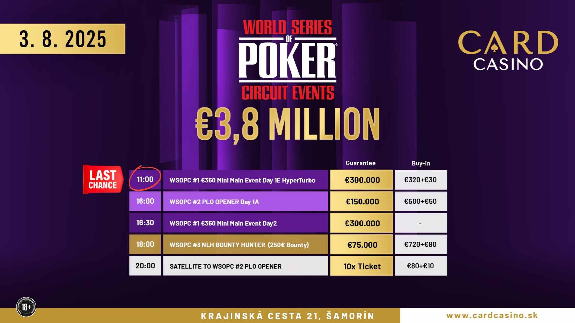Im Card Casino Samorin (SK) hatte das Mini Main Event der World Series of Poker Circuit (WSOPC) gestern zwei weitere Startflights!
