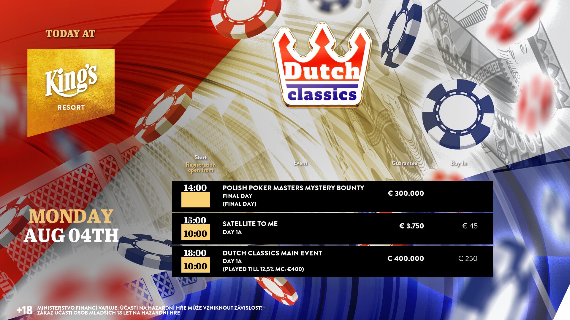 Hier das heutige Turnierprogramm im King’s Resort Rozvadov: