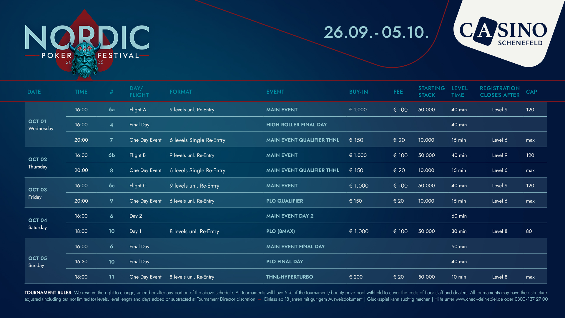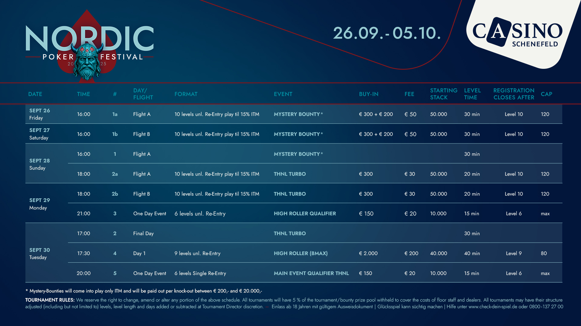 Im Casino Schenefeld vor den Toren Hamburgs wird zum Monatswechsel September-Oktober 2025 das Nordic Poker Festival (NPF) gespielt.