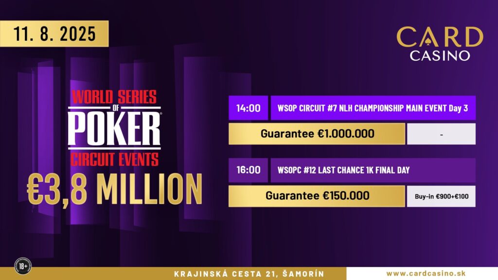 Im Card Casino Samorin (SK) wurden am gestrigen Sonntag im Rahmen des World Series of Poker Circuit (WSOPC) der Tag 2 des €1.500 Main Events angeboten.
