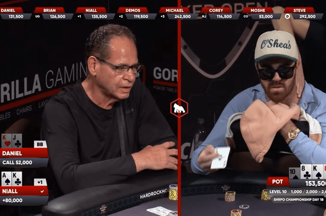 In einem riesigen Pott erhöhte Niall Costigan auf 4.500, Corey Harrison im Hijack callte mit