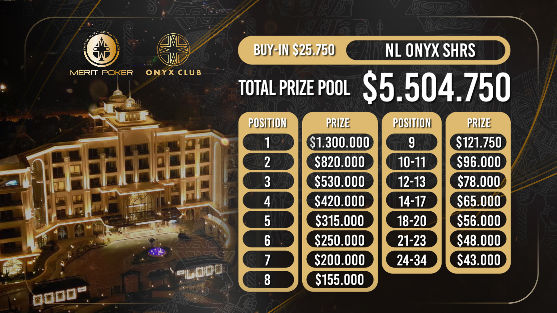 Diejenigen, die das Glück haben, ins Geld zu kommen, werden auch Punkte für die Onyx Player of the Series-Rangliste sammeln, wobei der letztendliche Gewinner ein $110.000 Triton Poker Jeju-Paket erhält, das einen Seat im Main Event im Wert von $100.000 und $10.000 an Reisekosten beinhaltet.