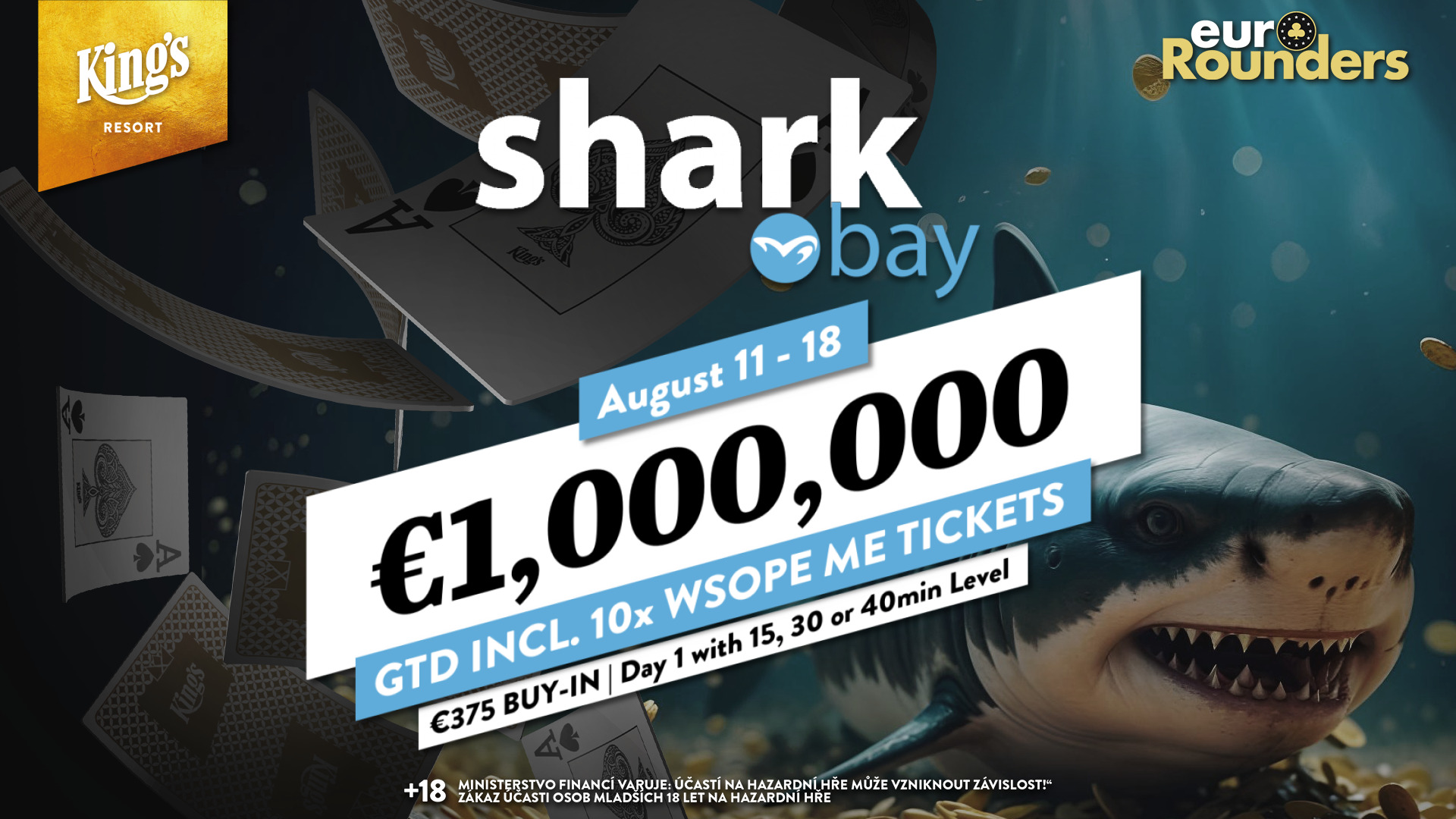 Am Sonntag gibt es ab 20:10 Uhr live aus dem King’s Resort Rozvadov, den Livestream vom Tag 2 des €375 SharkBay 1 Million NLH Main Event powered by EuroRounders.com.