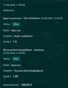 Bruder ich habe deinen 2. Versuch nichtmal mehr verfolgt aber kann dir schonmal sagen dass du den Leverkusen Schein als Brennholz nehmen kannst. Die gewinnen nicht.