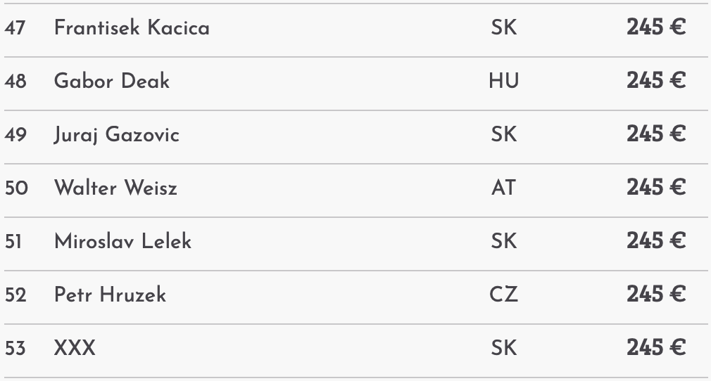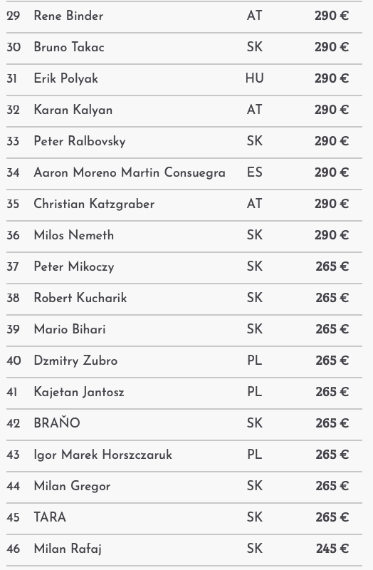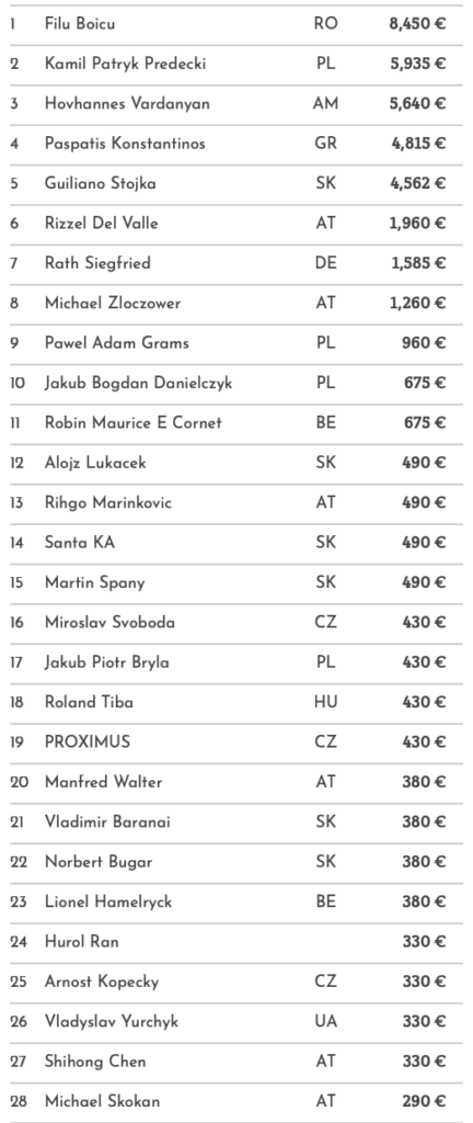 Der Top-Preis von €8.450 ging an den Rumänen Filu Boicu. Die beste DACH-Platzierung wurde belegt von Rizzel Del Valle. Der Österreicher konnte für den sechsten Platz €1.960 mit nach Hause nehmen.