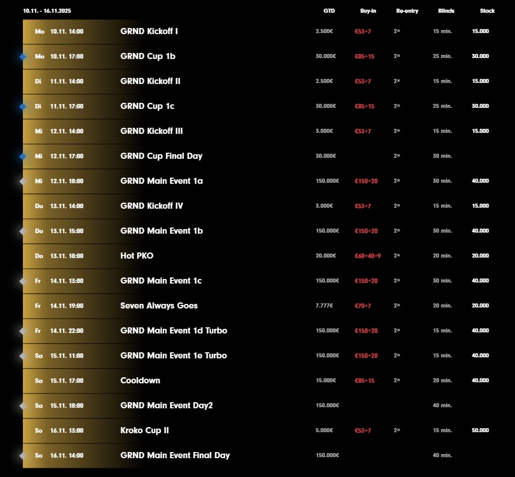 Heute kehrt dann erstmal wieder Ruhe ein im Grand Casino Asch, bis es am Mittwoch um 19:00 Uhr weitergeht mit dem traditionellen €44+6 Kickstarter mit einer €2.000 Garantie.