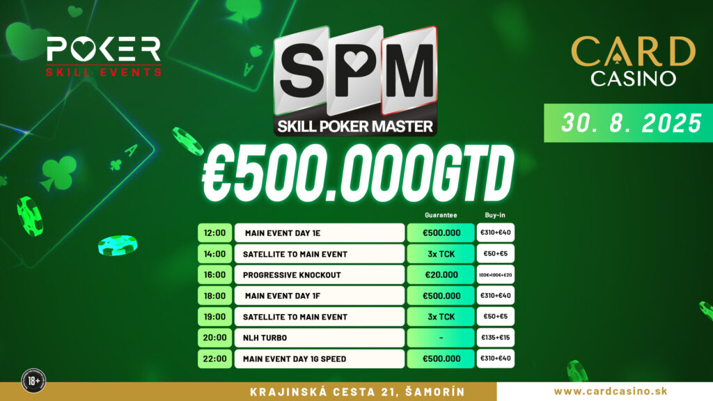 Im Skill Poker Master Main Event powered by Poker Skill Events im Card Casino Samorin (vormals Card Casino Bratislava) wurden gestern die Tage 1C und 1D angeboten.