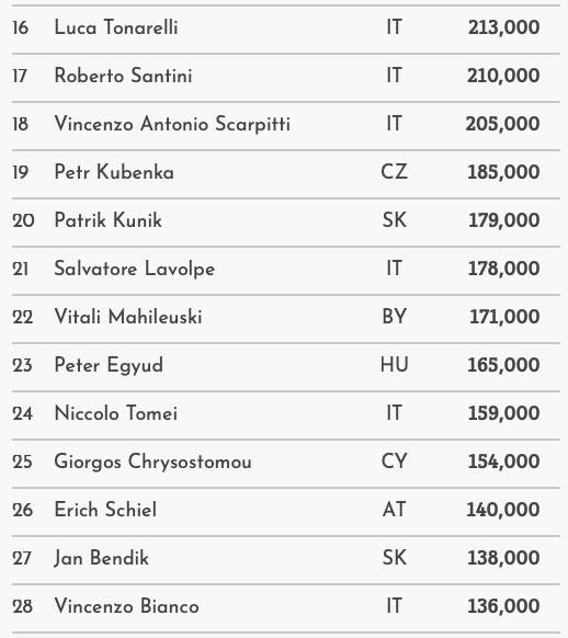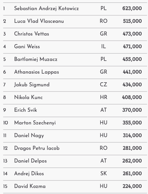 | Day 1C | 170 | 28 | Sebastian Kotowicz: 623.000 |
