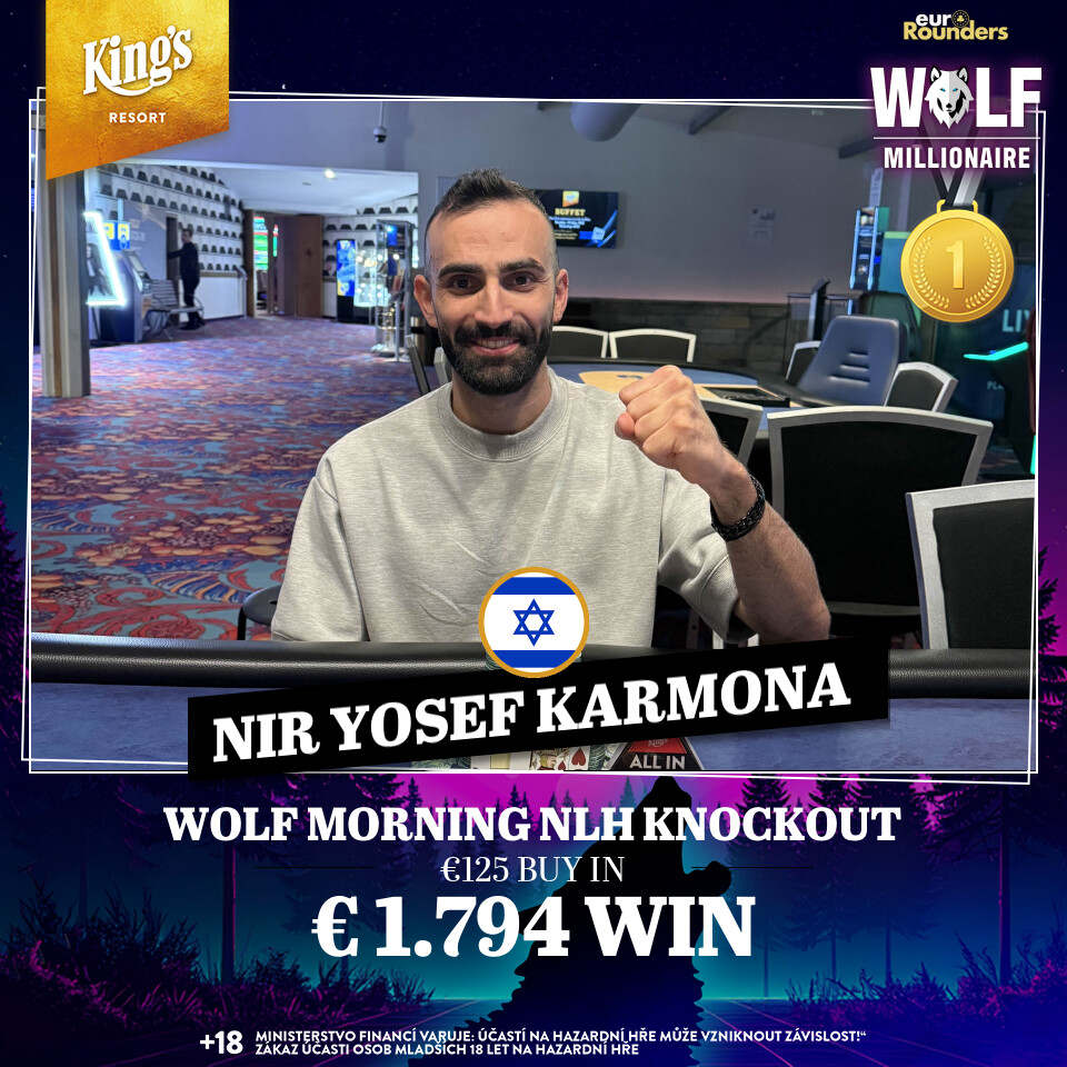 Am Final Table sollte mit Igor Fonseca Brito (POR, 5., €509) auch einer der letzten Turniergewinner im King’s landen, genauso wie drei Deutsche und ein Schweizer: Stephan Lorenz (GER) wurde 9. (€186), Christian Jetz (GER) finishte auf Rang 6 (€398) und Jan Cronauer (GER) schaffte es bis auf Rang 3 (€835). Mit „King of Kings“ (SUI) saß einer der höchstdekorierten King’s Regs im Heads-Up. Der nächste Turniersieg sollte im gestrigen Beginner’s Monday allerdings noch auf sich warten lassen. Als Runner-Up vergrößerte „King of Kings“ seine Bankroll um weitere €1.276. Der Sieg ging samt €1.794 Prämie und einigen eingesammelten Bountys zum Wochenanfang an Nir Karmona aus Israel.