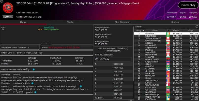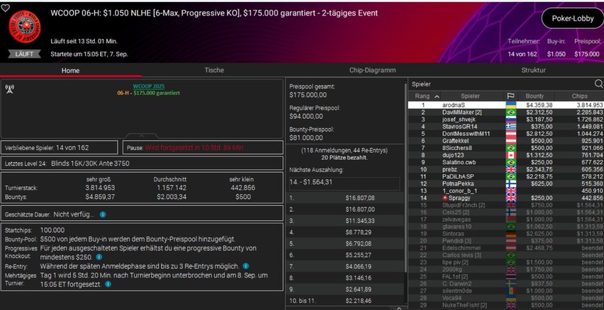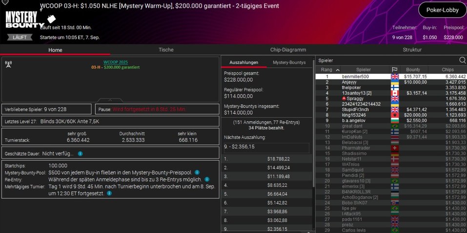 Auf PokerStars fiel gestern der Startschuss zur World Championship of Online Poker (WCOOP) 2025 mit den ersten Turnieren.