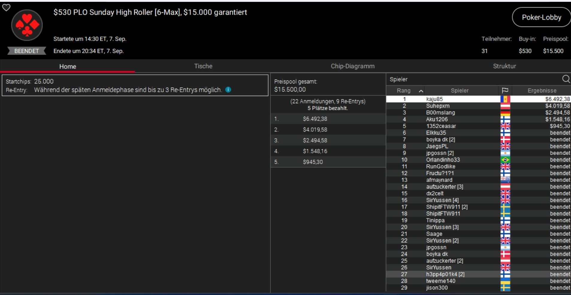 Zu Platz 2 und 3 für „Suhepxm“ und „B00mslang“ reichte es beim $530 PLO, womit die DACH-Bilanz fast makellos war.