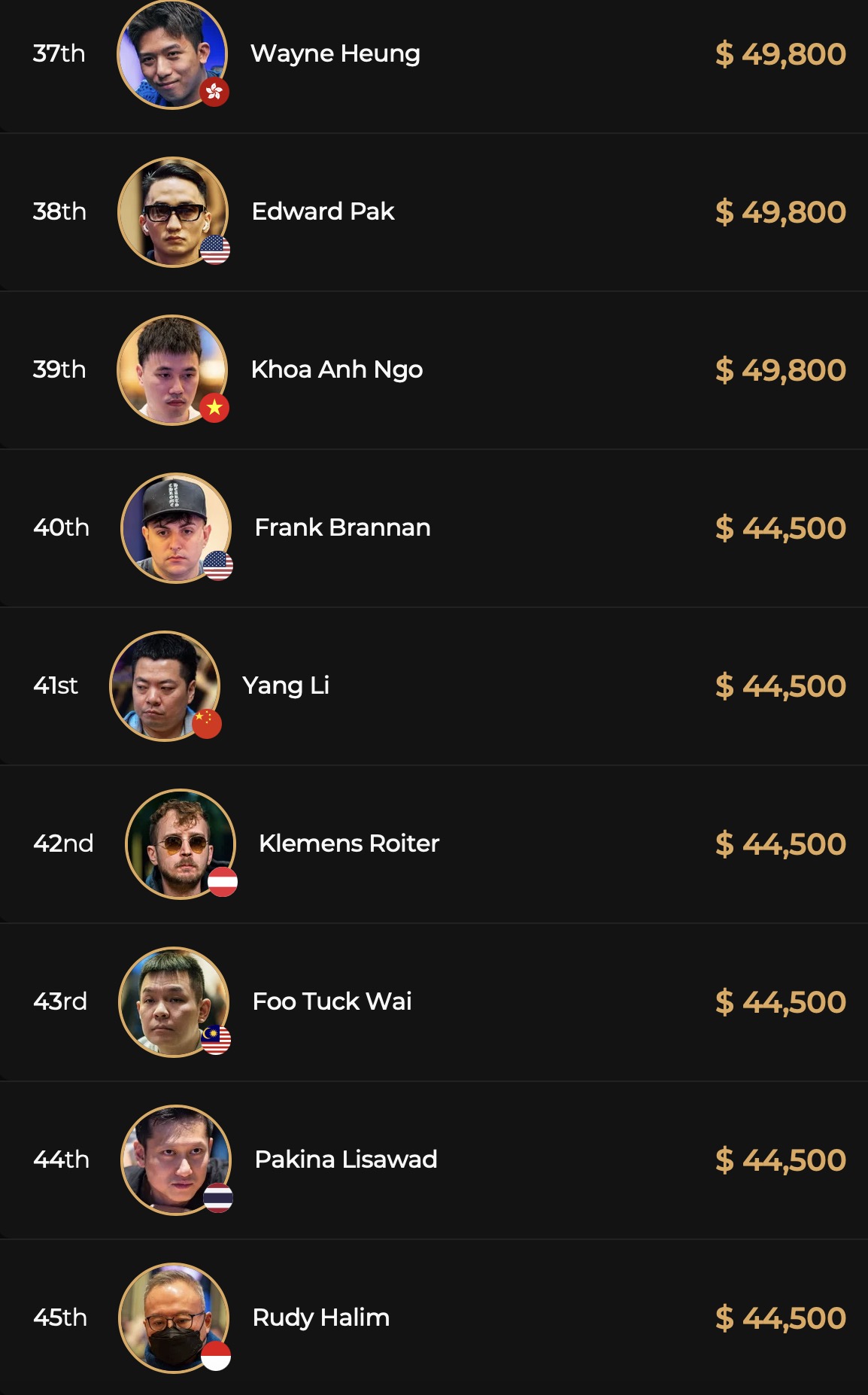 | 6 | Winfred Yu | 2,210,000 (44 antes) |