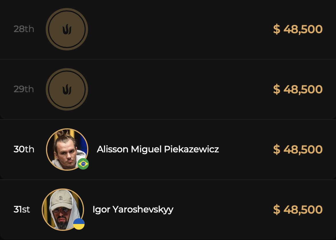 Das NLH 8-Max Event mit $30.000 Startgeld brachte 135 Entrys im Landing Casino zusammen, die für $5.490.000 im Preispool sorgte. Der sollte auf die Top-31 Finisher aufgeteilt werden, beginnend mit $48.500 Mincash und endend bei der Siegprämie in Höhe von $1.162.000.
