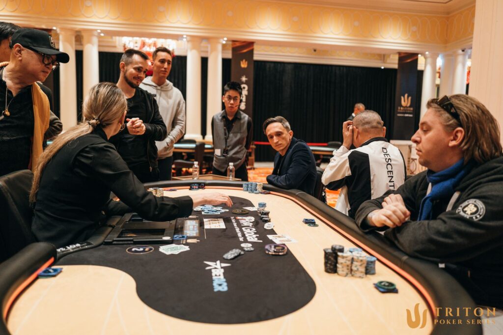 An den ging Elton Stang vor Wang Ye als Chipleader. Lange Zeit sollte das auch so bleiben, während sich Michael Zhang (6., $359.000) als Shortstack im Short Deck Event durchkämpfen musste. Zwischenzeitlich sah es danach aus als könnte Isaac Haxton (3., $792.000) ein asiatisches Heads-Up verhindern. Doch am Ende sollte er seinen „Triton-Fluch“ weiter mit sich tragen und trotz 57 Triton Cashes noch immer auf seinen erste Titel warten.