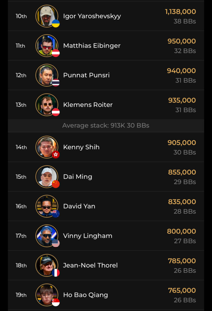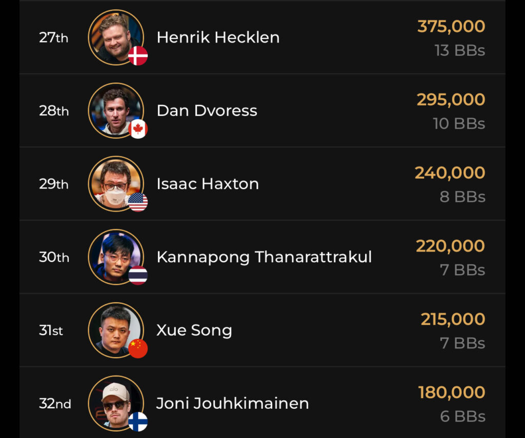 Tom Fuchs aus Deutschland erzielte die beste DACH-Platzierung mit Platz 7 und $345.000 Preisgeld. Matthias Eibinger wurde außerdem 13. für $153.000.