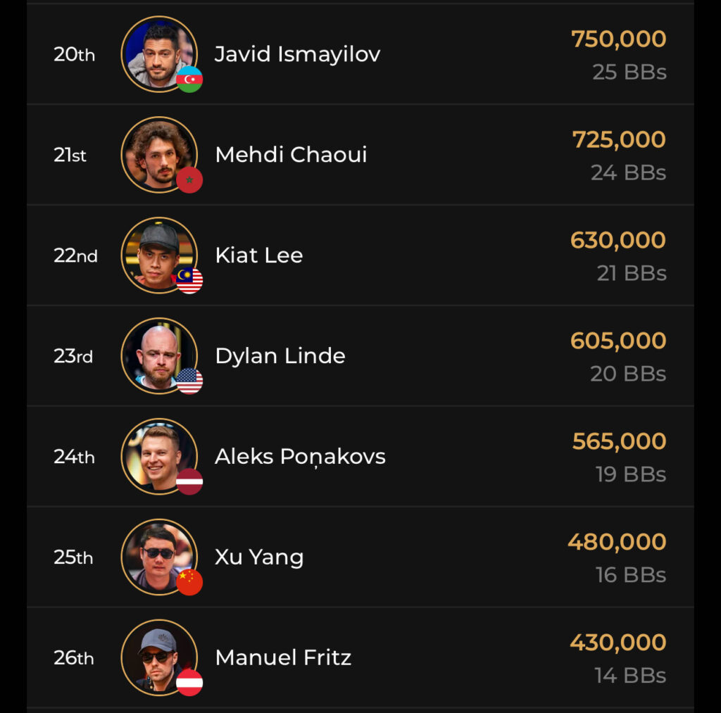 | 17 | Aleks Poņakovs | Lettland | $125,000 |