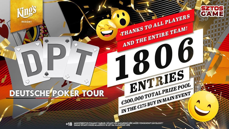 Mit 419 Entrys am Sonntag erreichte man beim €175 DPT Main Event eine Gesamtbeteiligung von 1.806 Turnierstarts und knackte so auch die Garantie von €300.000.