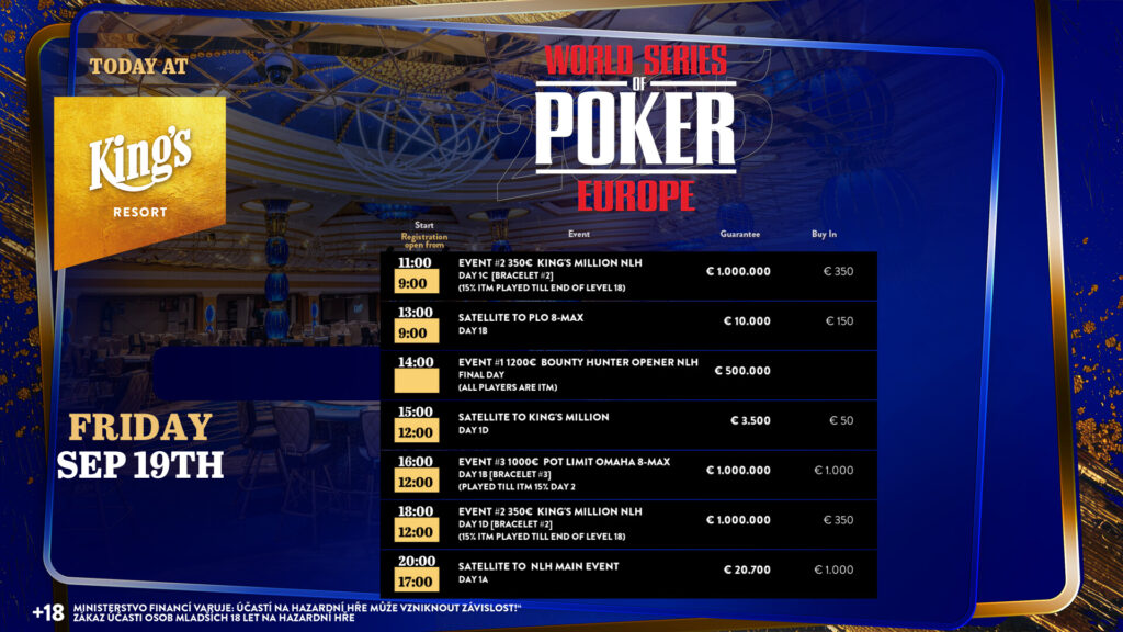 Das WSOPE Event #1: €1.200 Bounty Hunter Opener bei der World Series of Poker Europe (WSOPE) im King’s Resort Rozvadov bot gestern seinen zweiten von zwei Starttagen an.