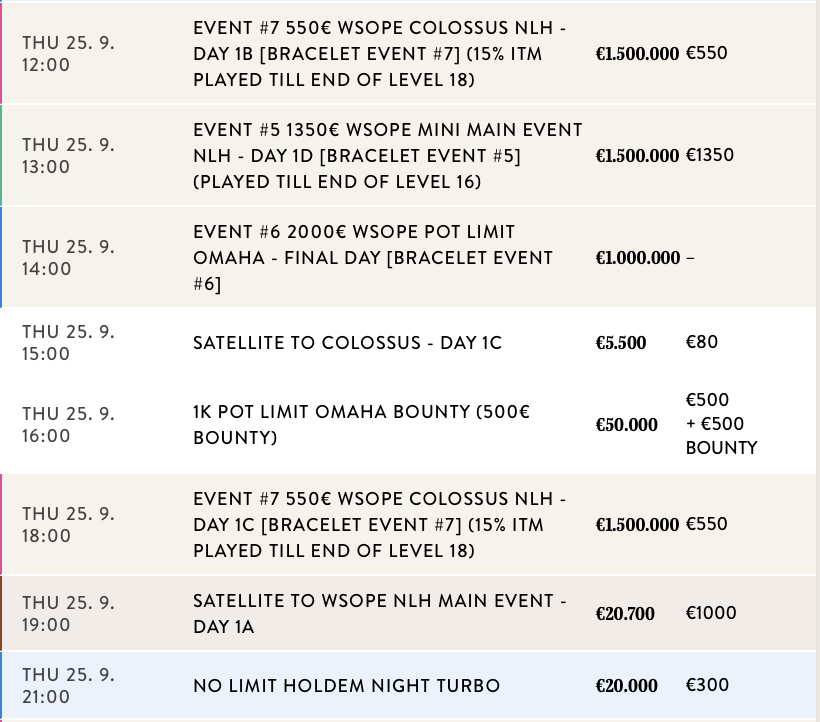 Hier sind die Payouts: (Platz 1 bis 5 plus €10.350 WSOPE Main Event Tag 1a Ticket)