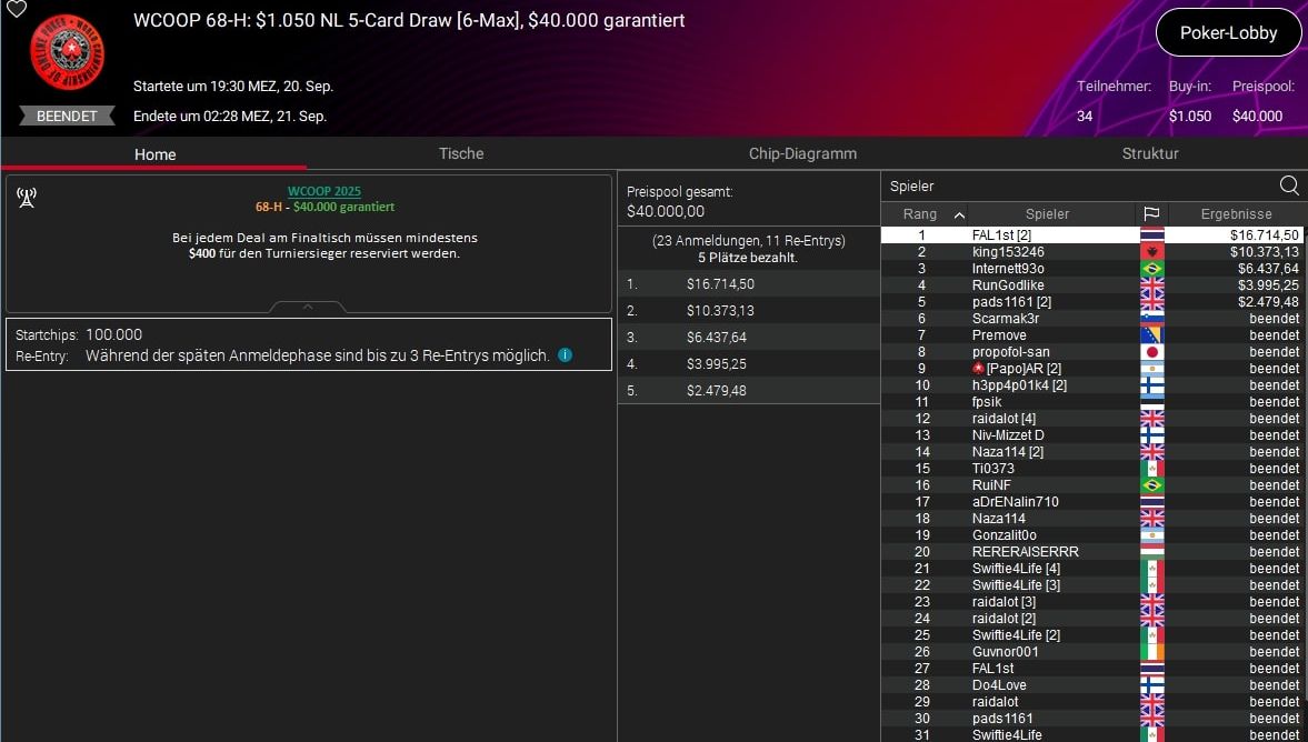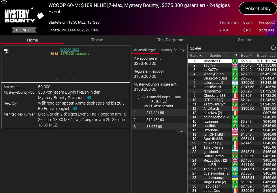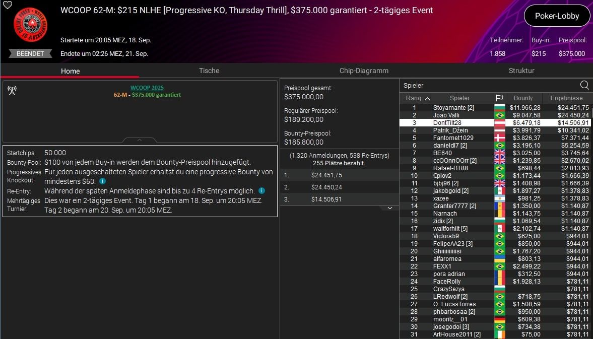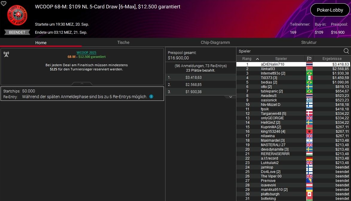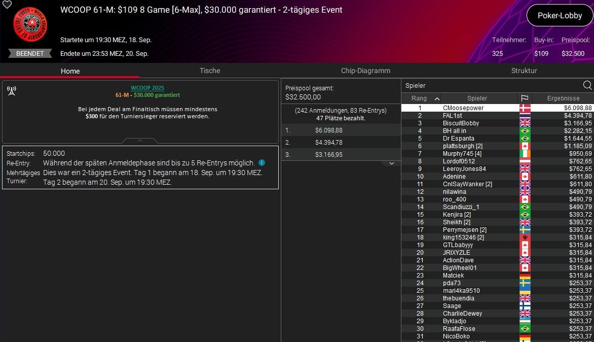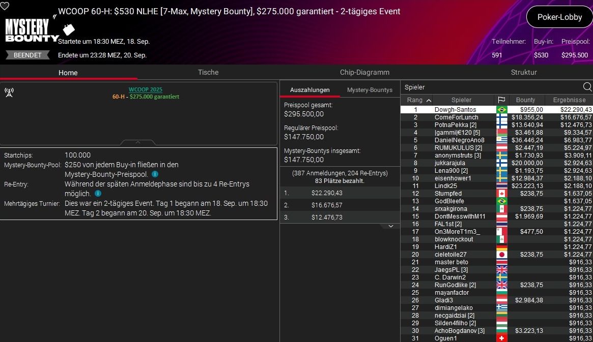 Besonders lukrativ war der zweite Platz bei Event #66-H, einem $5.200 PLO 6-max, der rund $52.000 Preisgeld einbrachte.