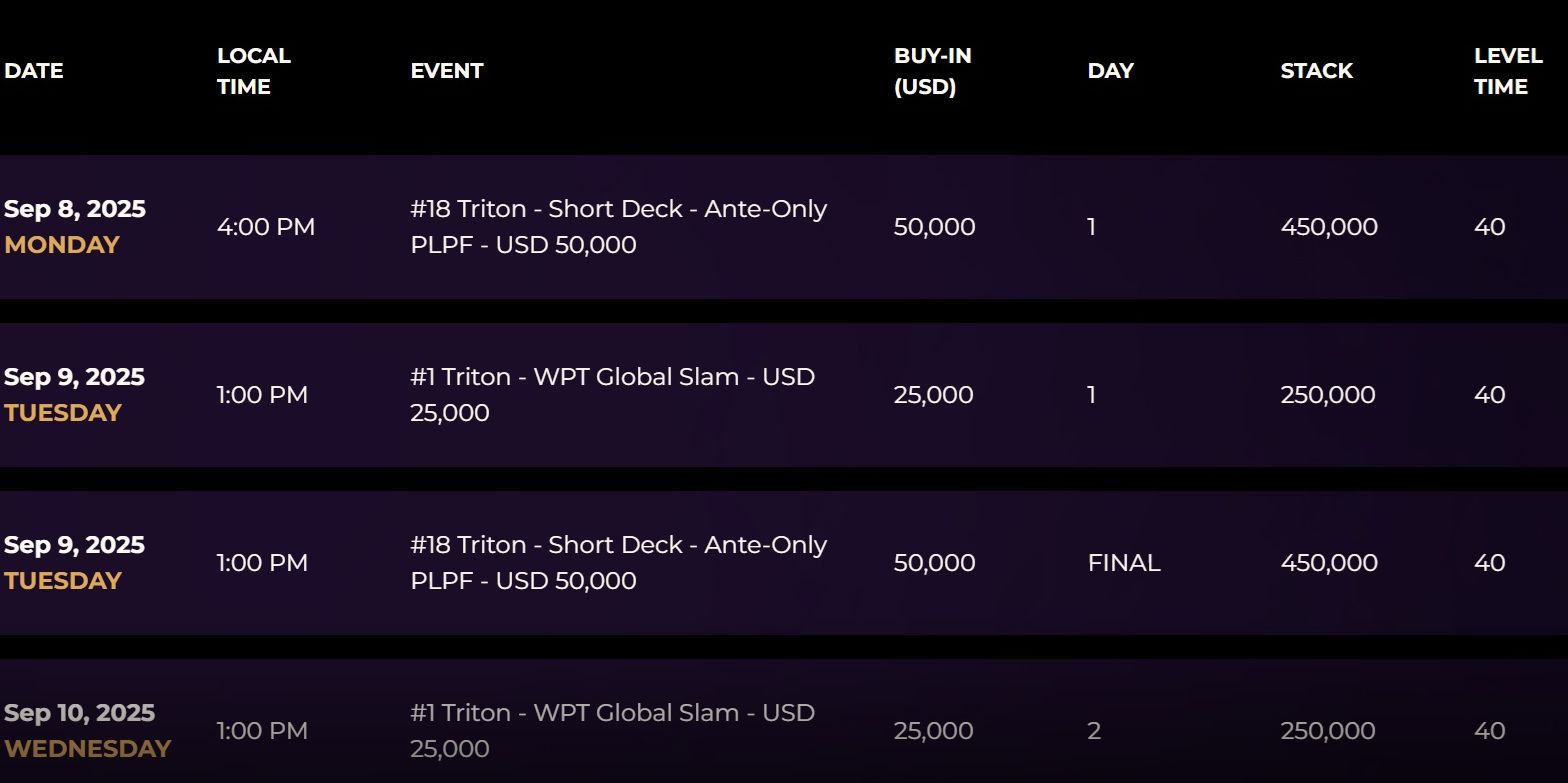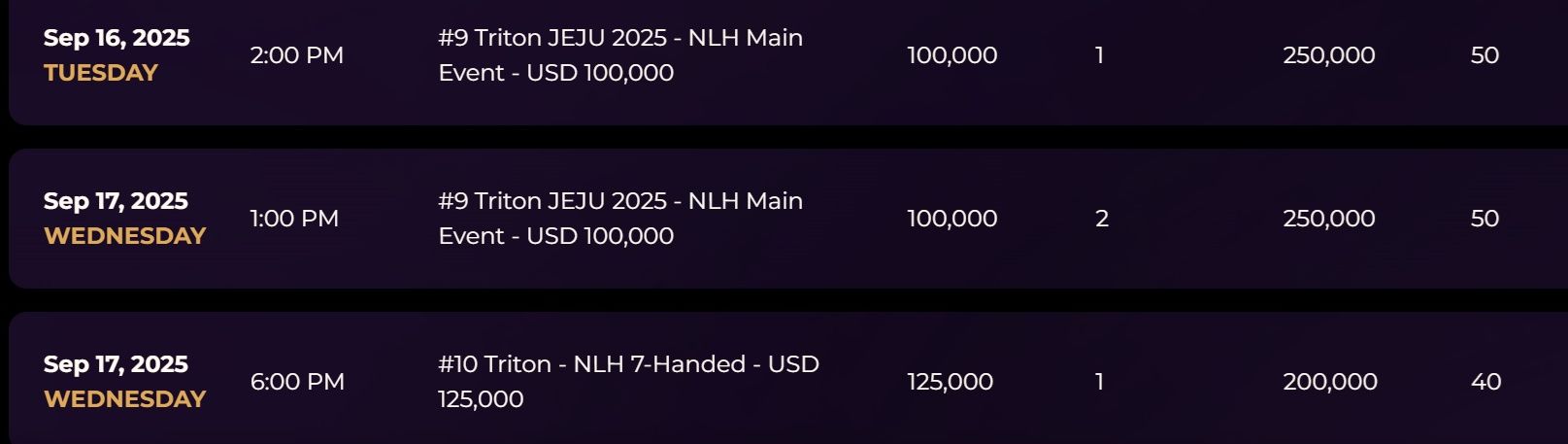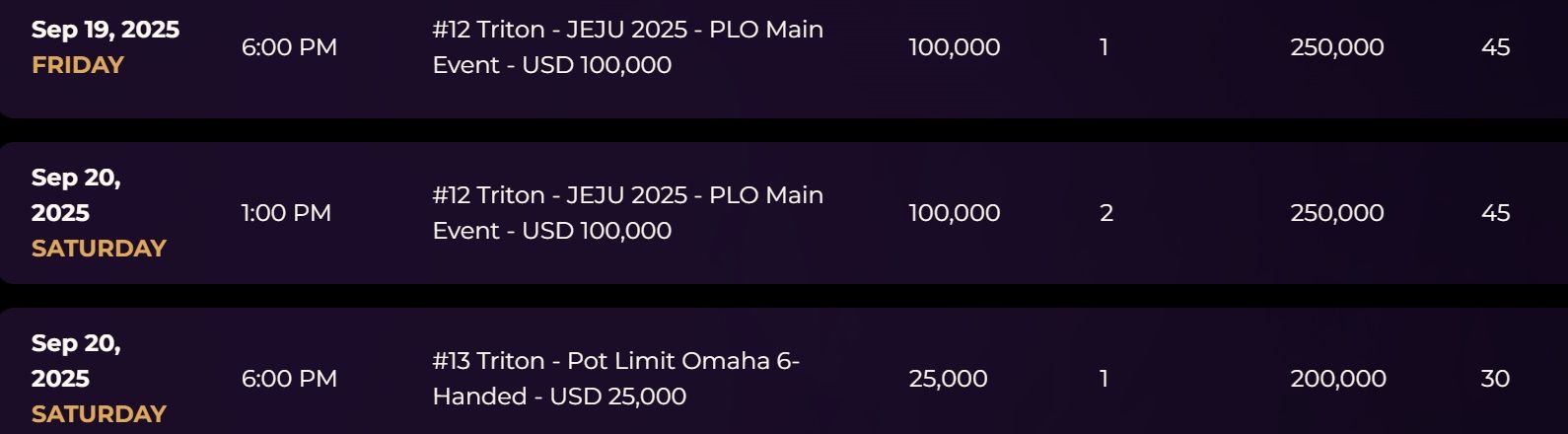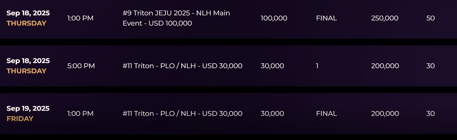 Vom 08. bis zum 23. September 2025 findet im Landing Casino des Shinhwa Resort (Südkorea) die Triton Super High Roller Series Jeju II in Kooperation mit der World Poker Tour (WPT) statt.