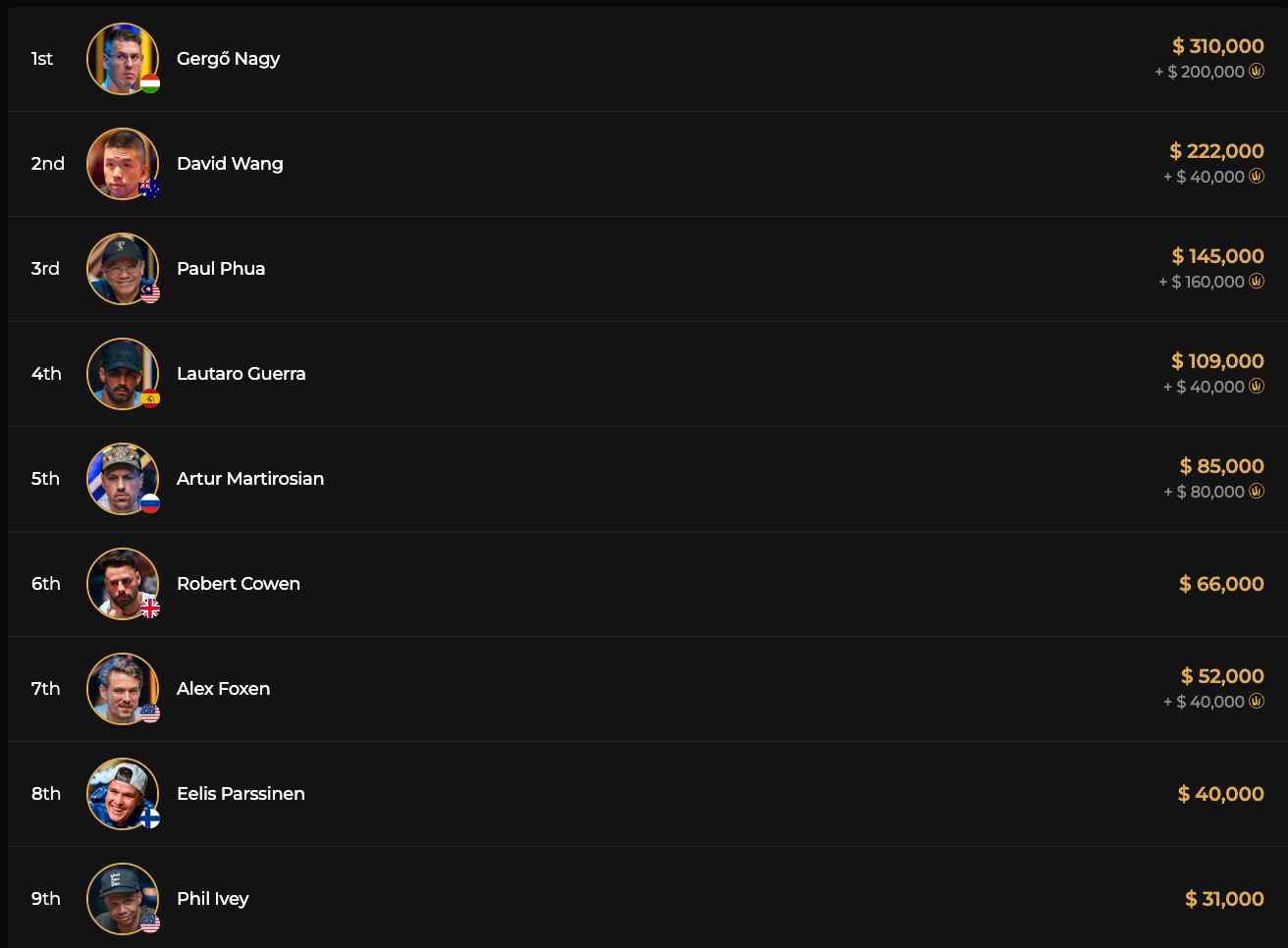 Den Sieg holte am Ende Gergő Nagy aus Ungarn für $310.000 + $200.000!