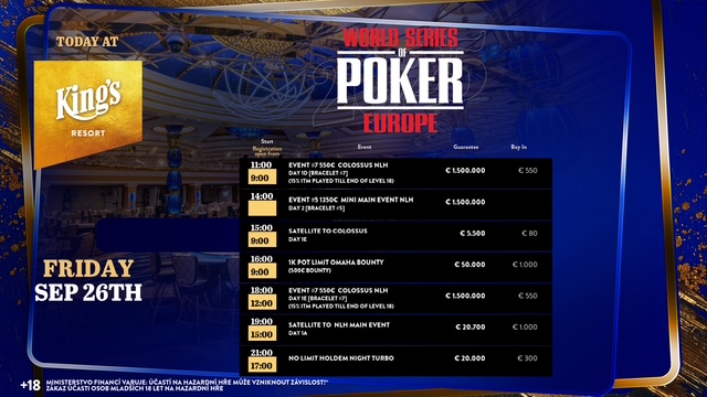 Das Colossus der World Series of Poker Europe (WSOPE) im King’s Resort Rozvadov hatte zwei weitere Startflights – die Teilnehmerzahlen haben am Freitag zum Start des Wochenendes ordentlich angezogen.