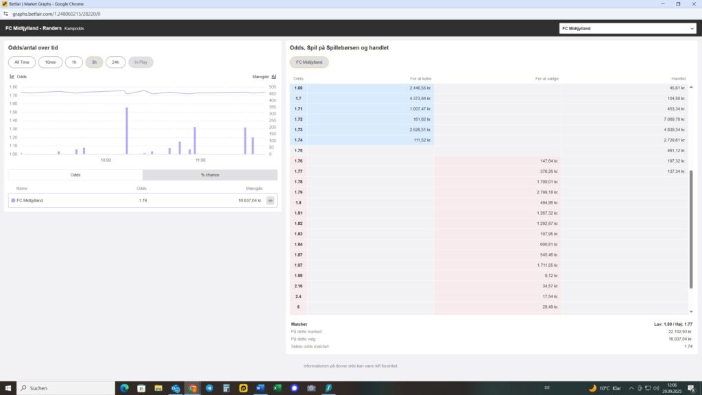 @Geuner Übrigens eben auch 1.81 auf Midtjylland zu bekommen. 5.000 Euro Einsatz mit mehr als 1,77. Also lag ich hier falsch, weil ich vermutet hatte, daß die quote eher fallen würde.