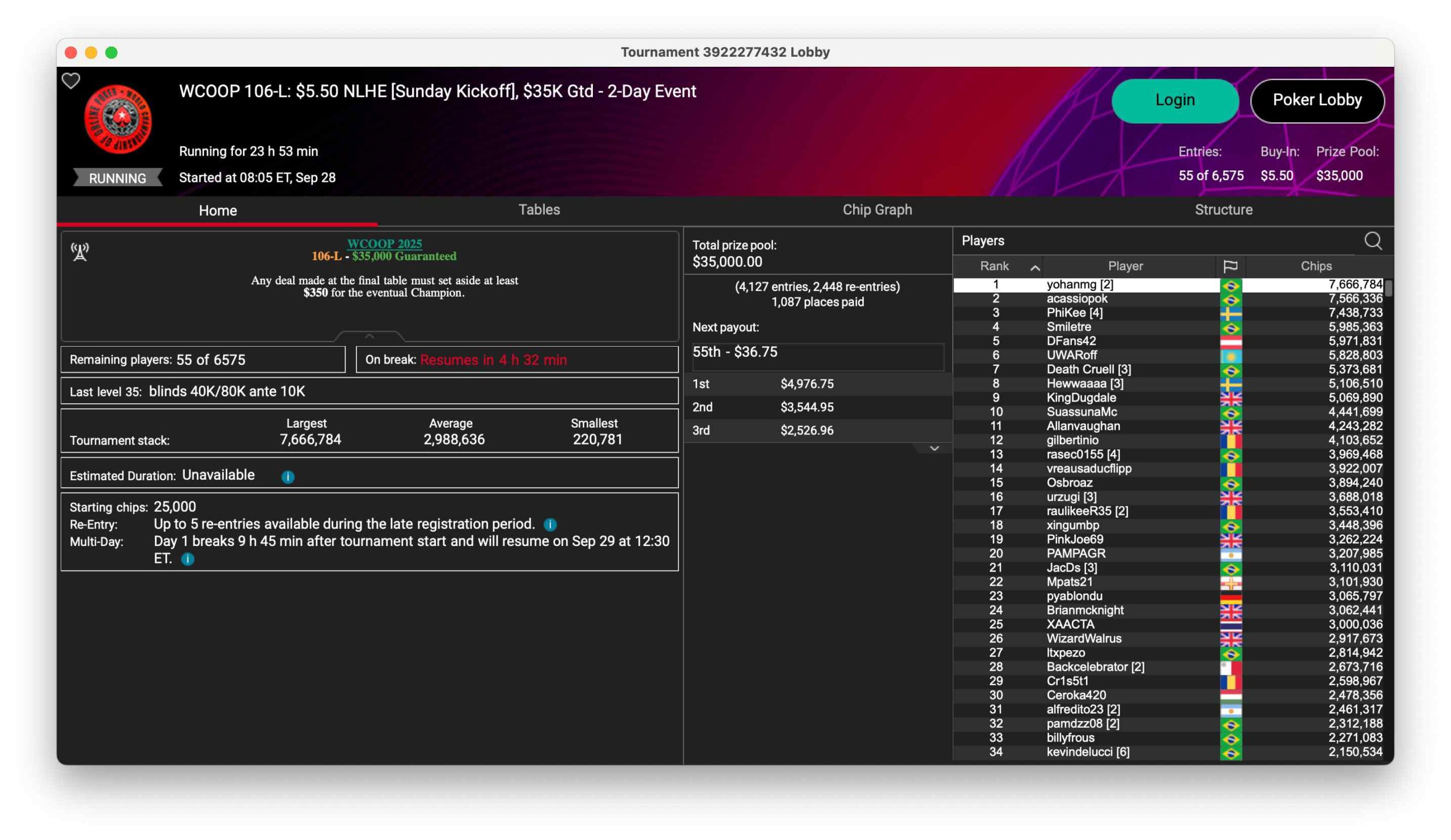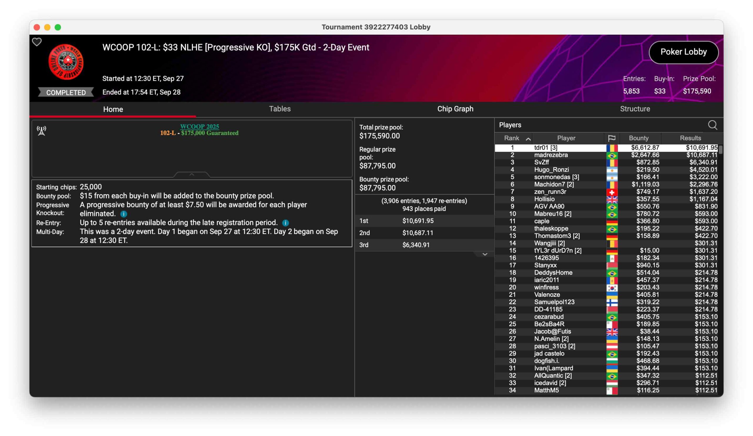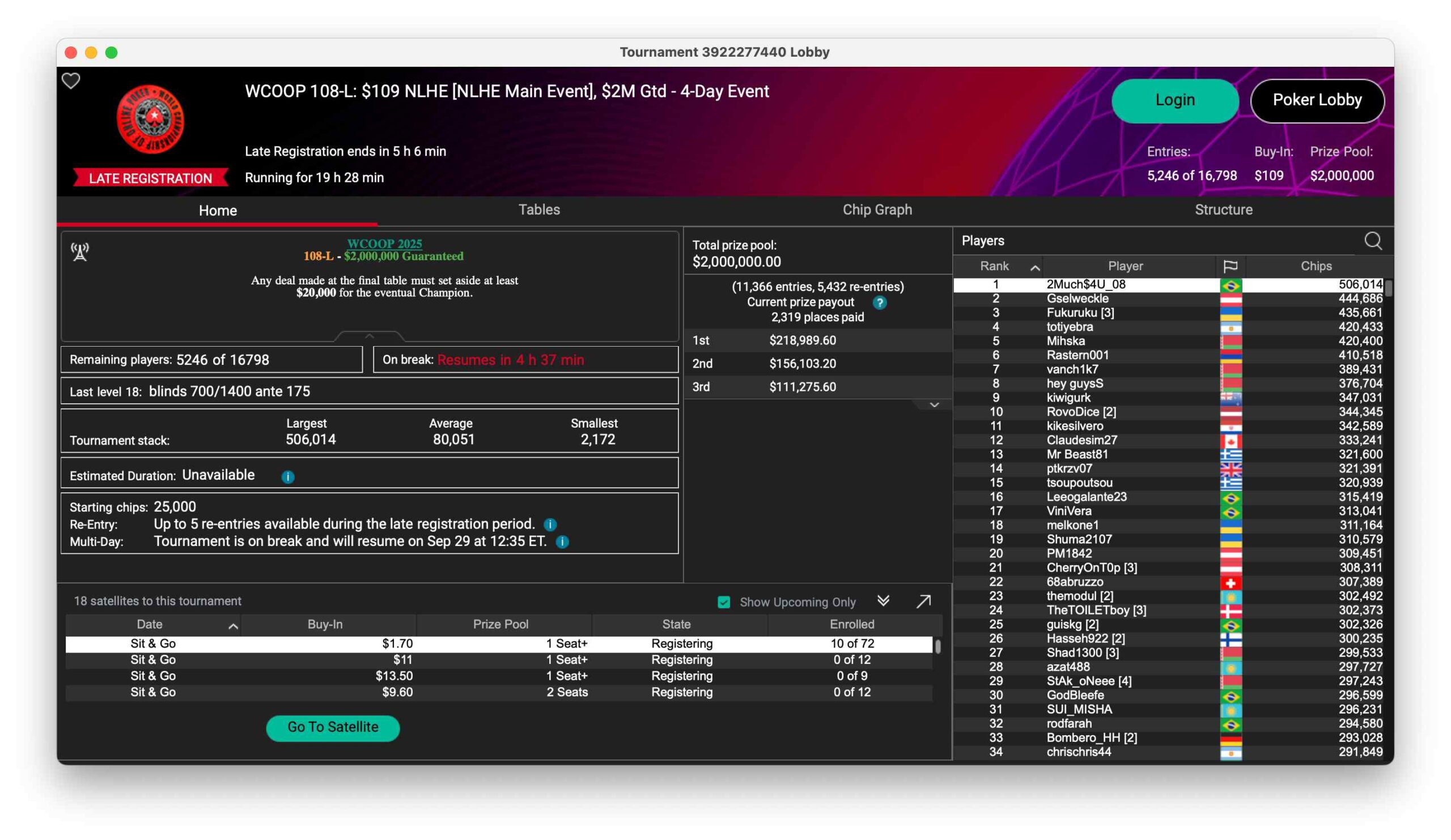| Tue | 15:05 | WCOOP 120-M: $55 NLHE [Heads-Up,][Turbo,][Progressive][Total][KO,][Zoom], $70K Gtd |