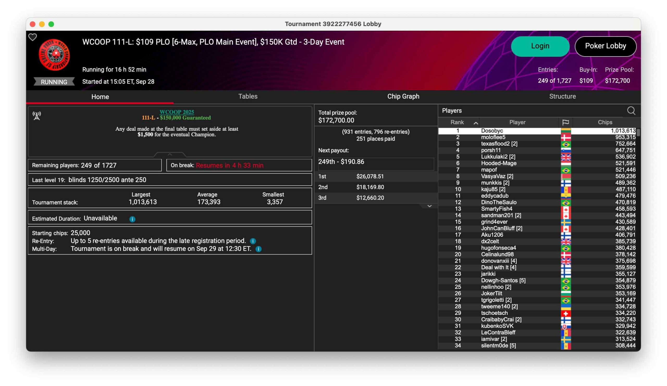 | Wed | 13:30 | WCOOP 122-M: $109 PLO, $40K Gtd |