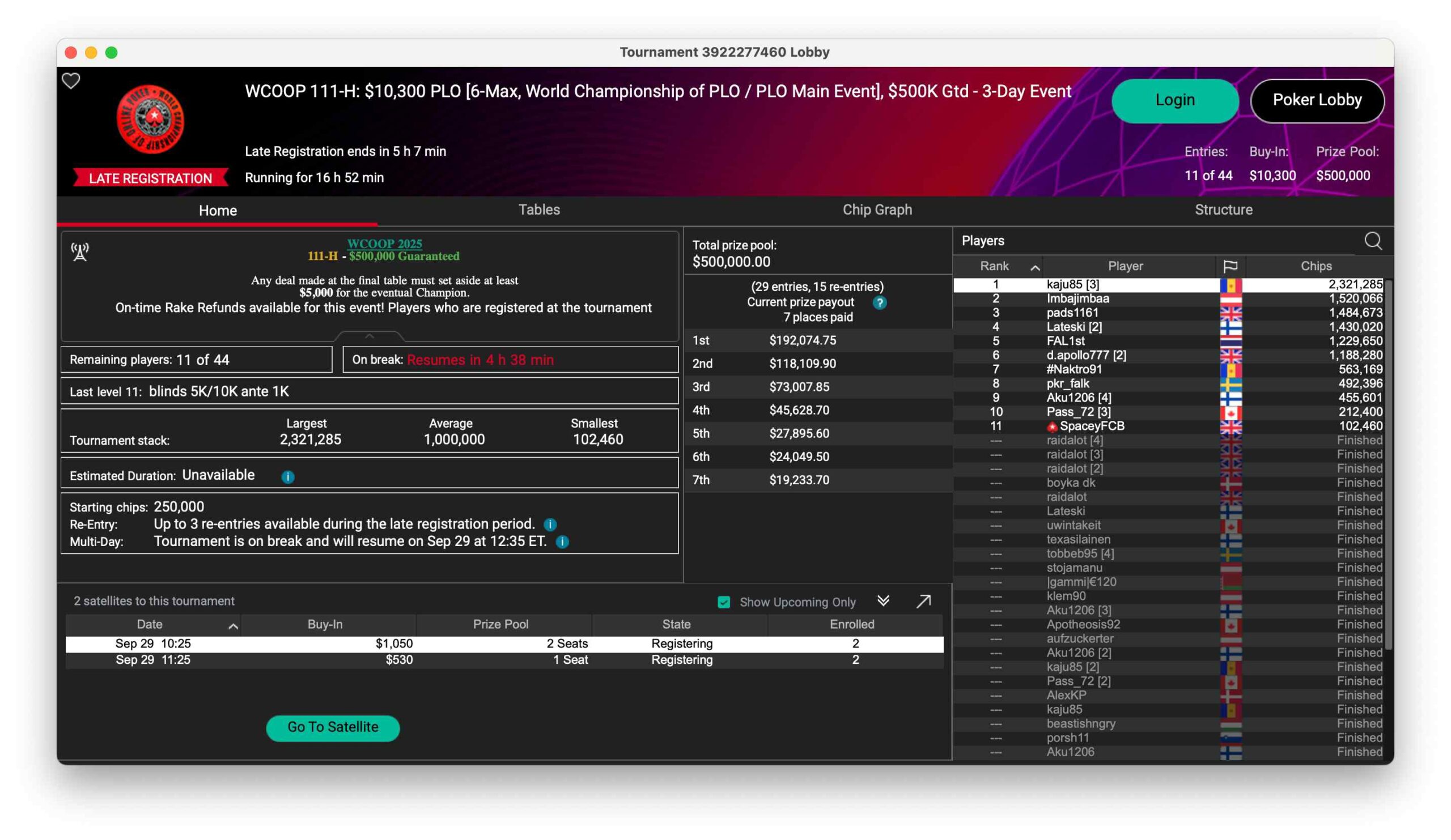 | Wed | 13:30 | WCOOP 122-L: $11 PLO, $17.5K Gtd |