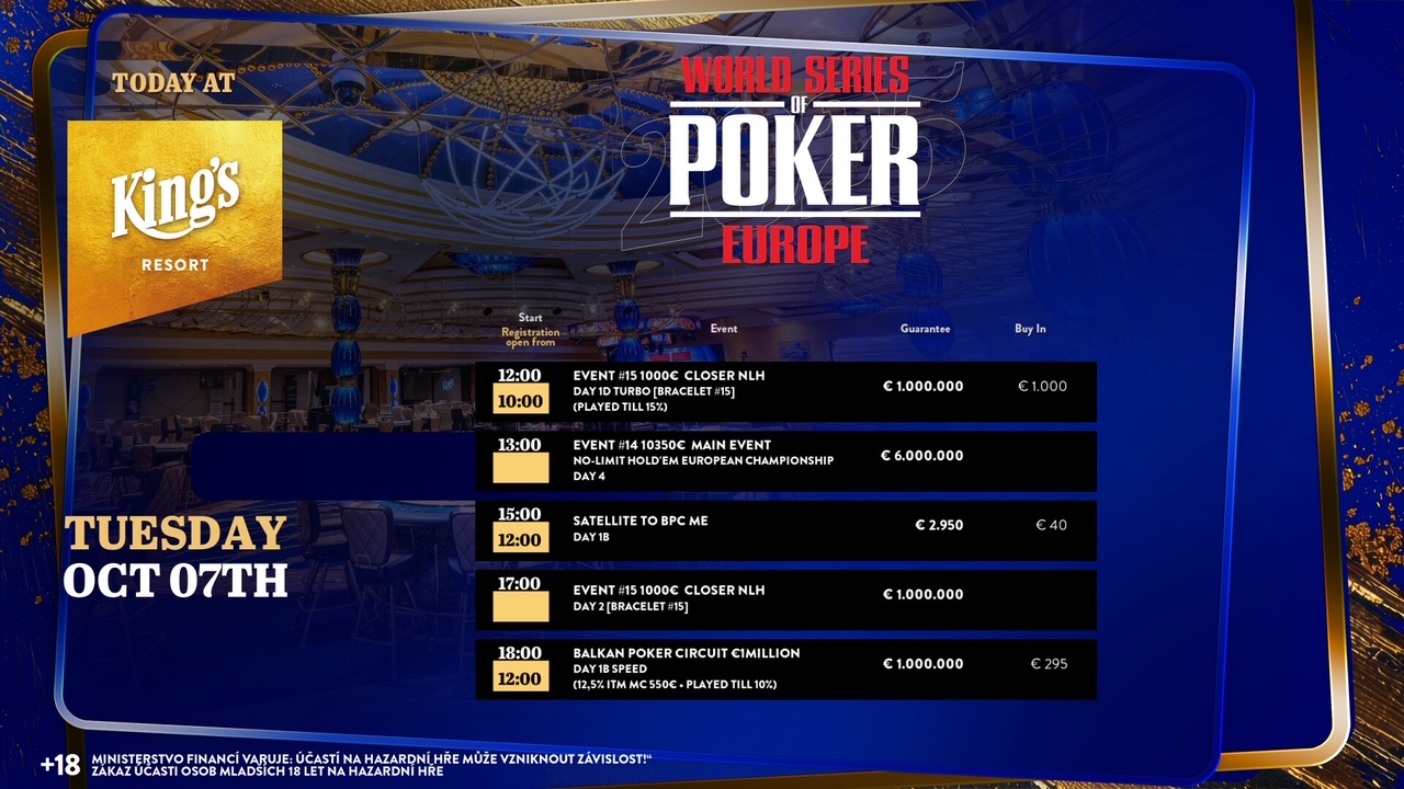 Nachdem die WSOPE mit Main Event in der Entscheidungsphase und Closer langsam zu Ende geht, startet im King’s Resort mit dem Balkan Poker Circuit (BPC) powered by EuroRounders.com ein nächstes großes Pokerevent mit €1.000.000-Garantie! Im King’s Casino Prag wurde ein Tagesturnier gespielt.