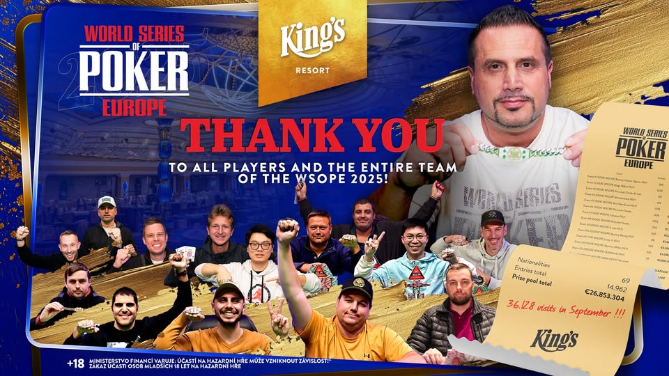 Das Main Event der World Series of Poker Europe (WSOPE) 2025 im King’s Resort Rozvadov hat zum letzten Mal seinen Sieger gefunden, denn der nächste WSOP Europe Champion wird im März in Prag gekrönt werden, wie gestern bekannt gegeben wurde.