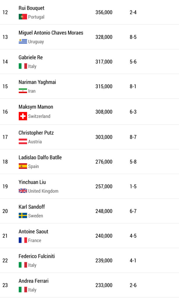 | 12 | Ludvig Sterner | Sweden | €1,840 |