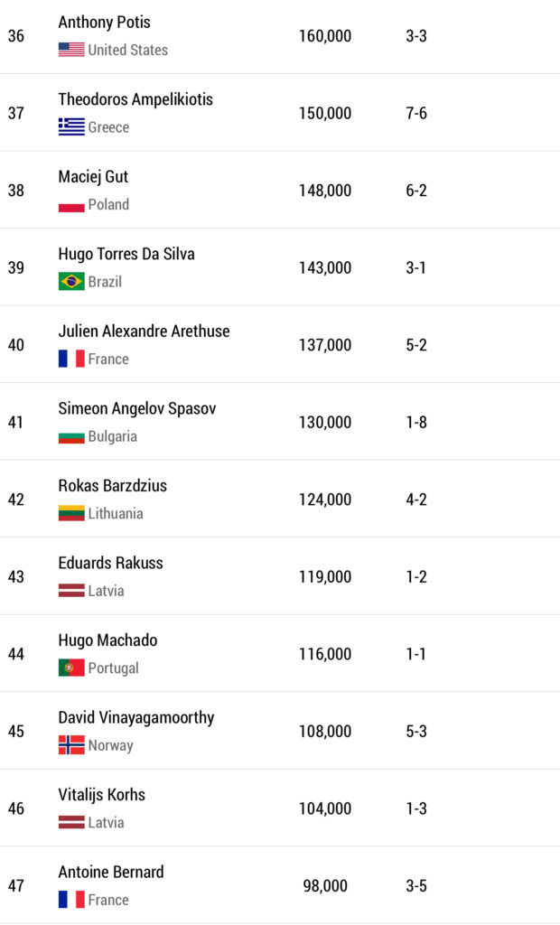 | 10 | Anton Bergstrom | Sweden | €2,280 |