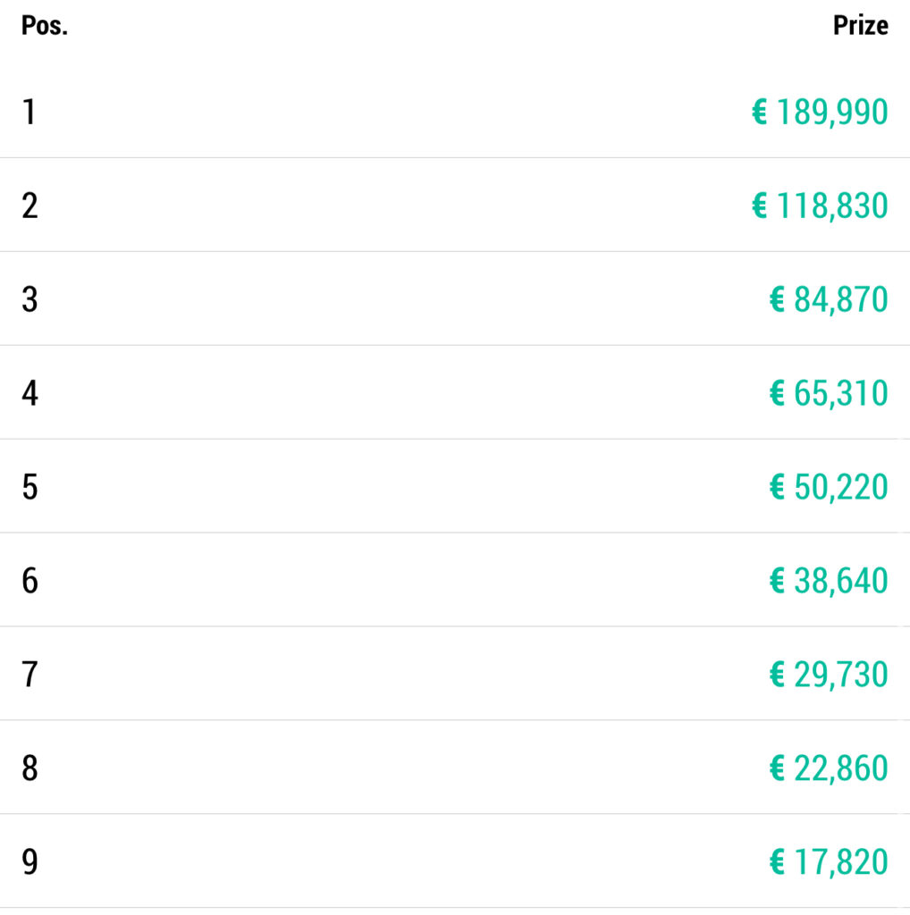 Der Australier Geoffrey Mooney konnte hier den Top-Preis von €14.020 kassieren und aus DACH-Sicht hatten wir Matthias Lipp (AT) auf Platz 10 dabei, der dafür €1.310 erhielt.