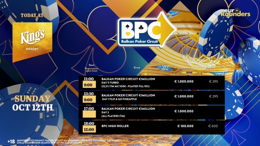 Im King’s Resort Rozvadov ging es gestern beim Main Event des Balkan Poker Circuit (BPC) powered by EuroRounders.com weiter mit Tag 1G und 1H.